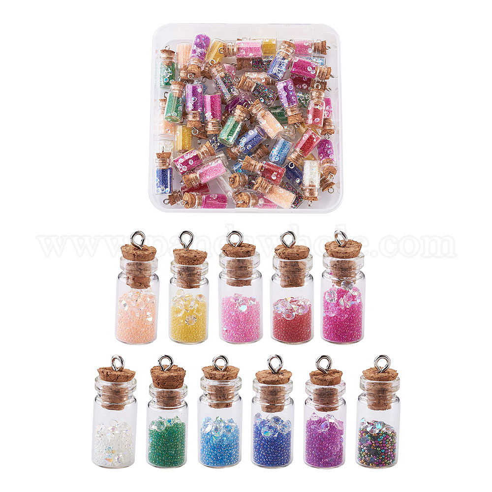 стеклянная бутылка желаний подвесные украшения: 28~29 около мм в длину, 11 мм диаметром, отверстие : 2 мм, 11 цветов, 6 шт / цвет, 66 шт;