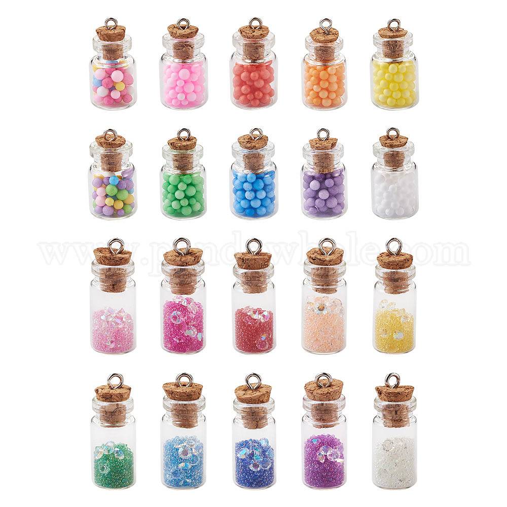 • (52) Непрозрачная лаванда Подвеска для бутылок из стекла, со смоляным горным хрусталем и стеклянными микрошариками внутри, пробка и платина железный винт с проушиной, разноцветные, 40 шт / коробка