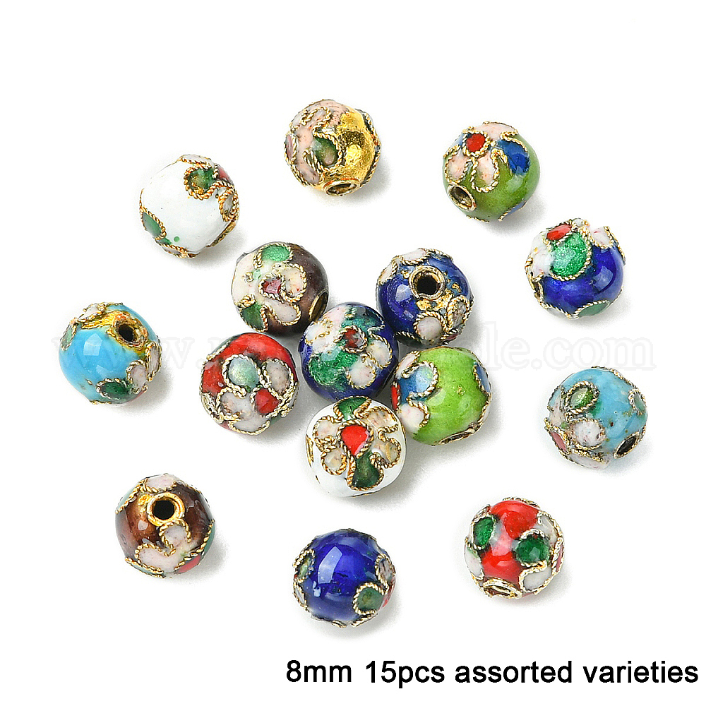 15шт. бусины ручной работы в технике перегородчатой эмали, круглые (035KA2)