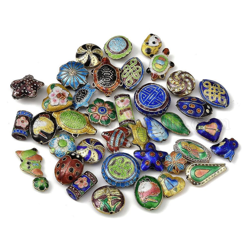 Бусины ручной работы перегородчатой, разнообразные, золотые