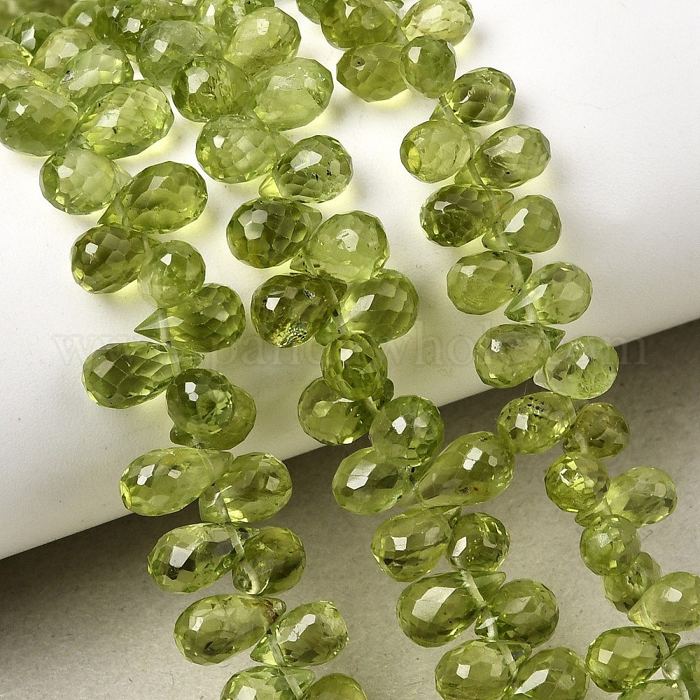 Природный перидот бисер нитей, граненые, Топ пробуренной, слеза