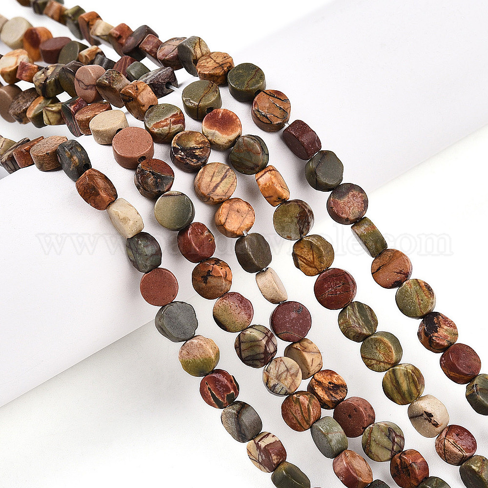 Нити бусин из натуральной яшмы пикассо/полихромной яшмы, плоско-круглые