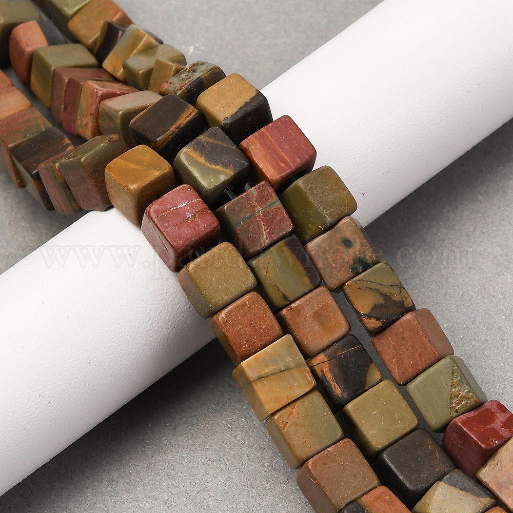 Нити бусин из натурального камня пикассо/полихромной яшмы, кубические