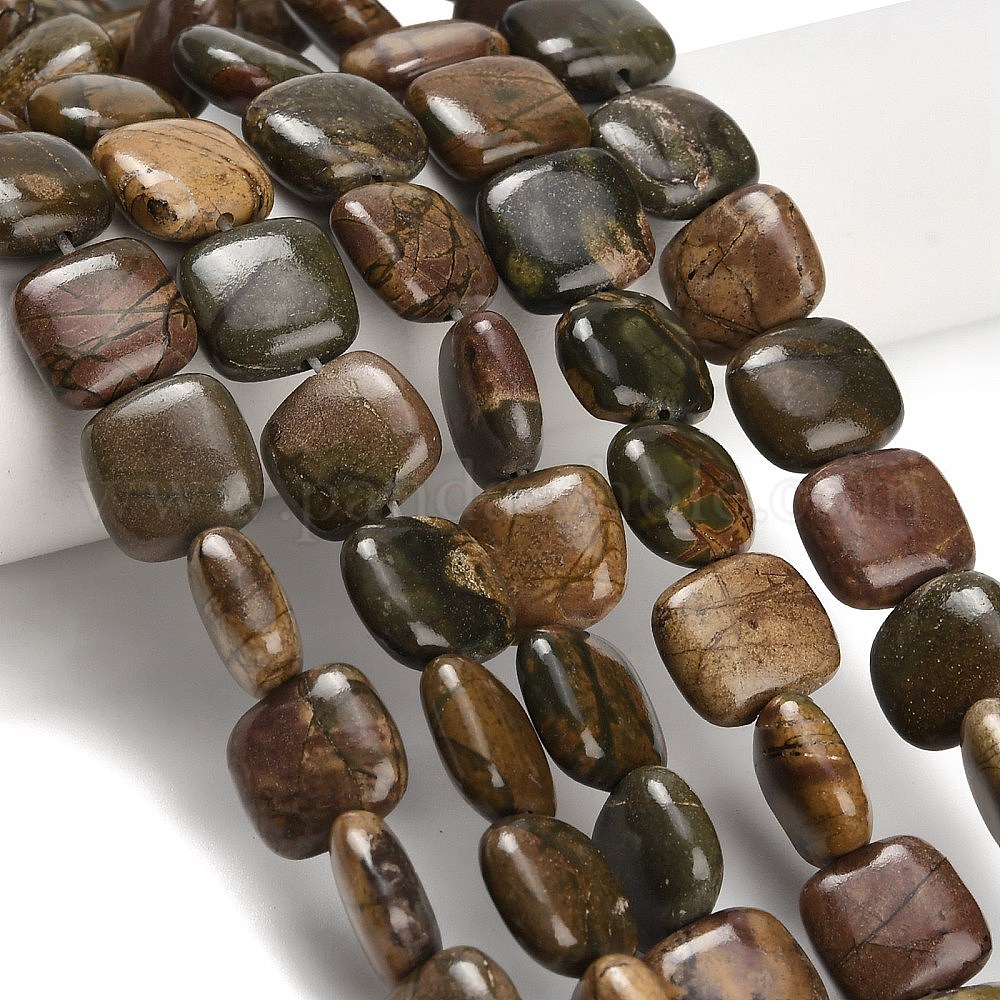 • Пикассо Камень Нити бусин из натурального камня пикассо/полихромной яшмы, квадратный, 11~12x11~12x4~6 мм, отверстие : 1.2 мм, около 32~36 шт / нитка, 14.76~6.73'' (37.5~42.5 см)