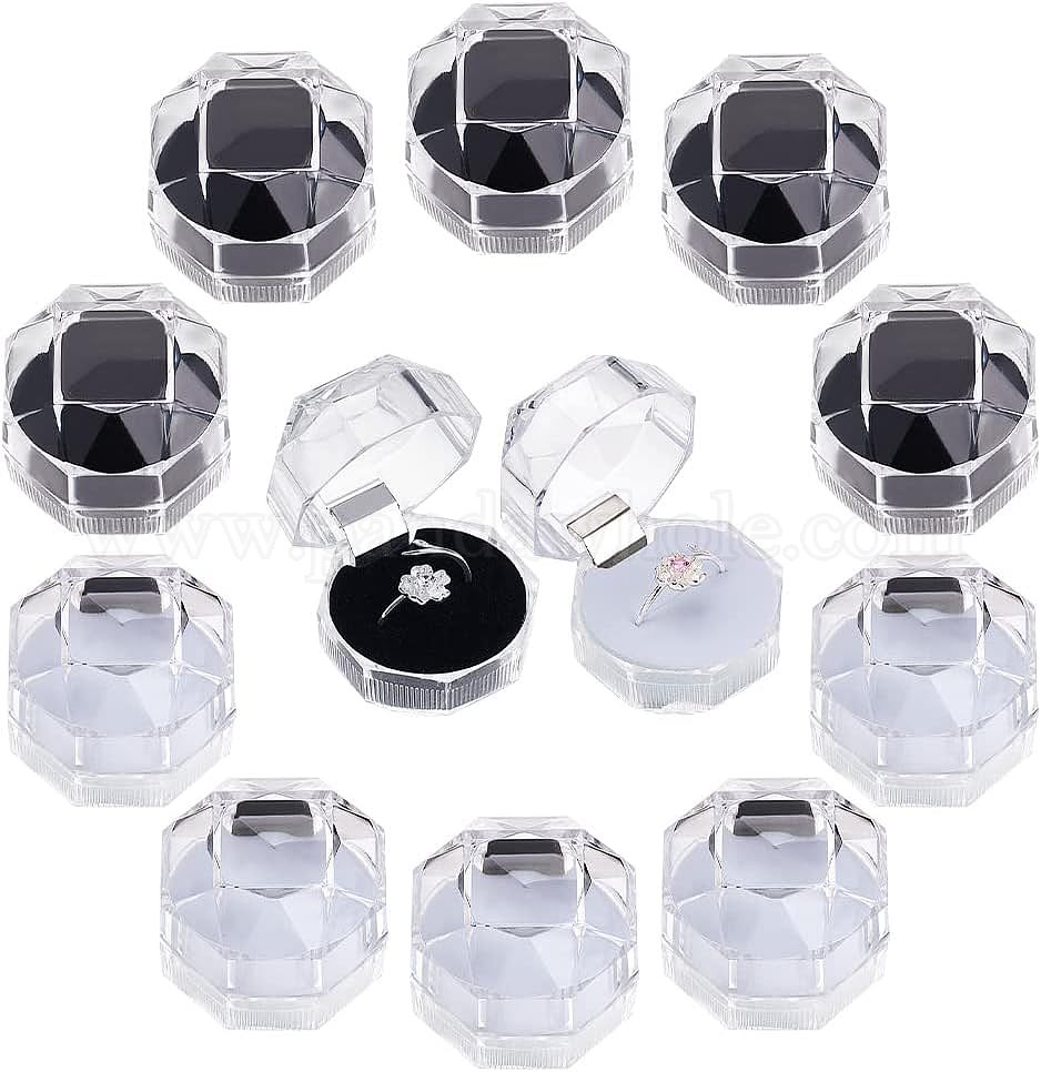 40 шт 2 цвета восьмиугольные прозрачные пластиковые коробки для колец, коробка ювелирных изделий