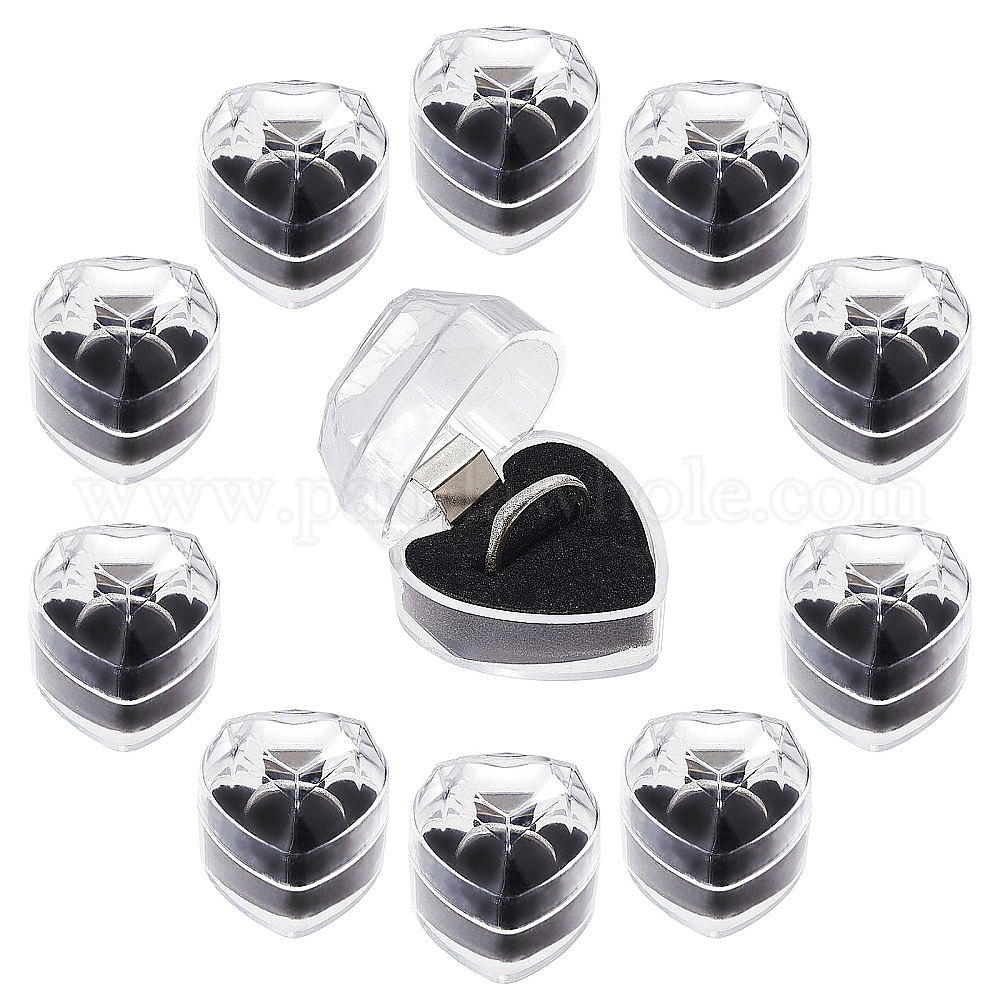 • Белый Пластиковые коробки для колец в форме сердца, подарочный футляр для ювелирного кольца с бархатной подкладкой, на день Святого Валентина, белые, 4.1x4x3.5 см