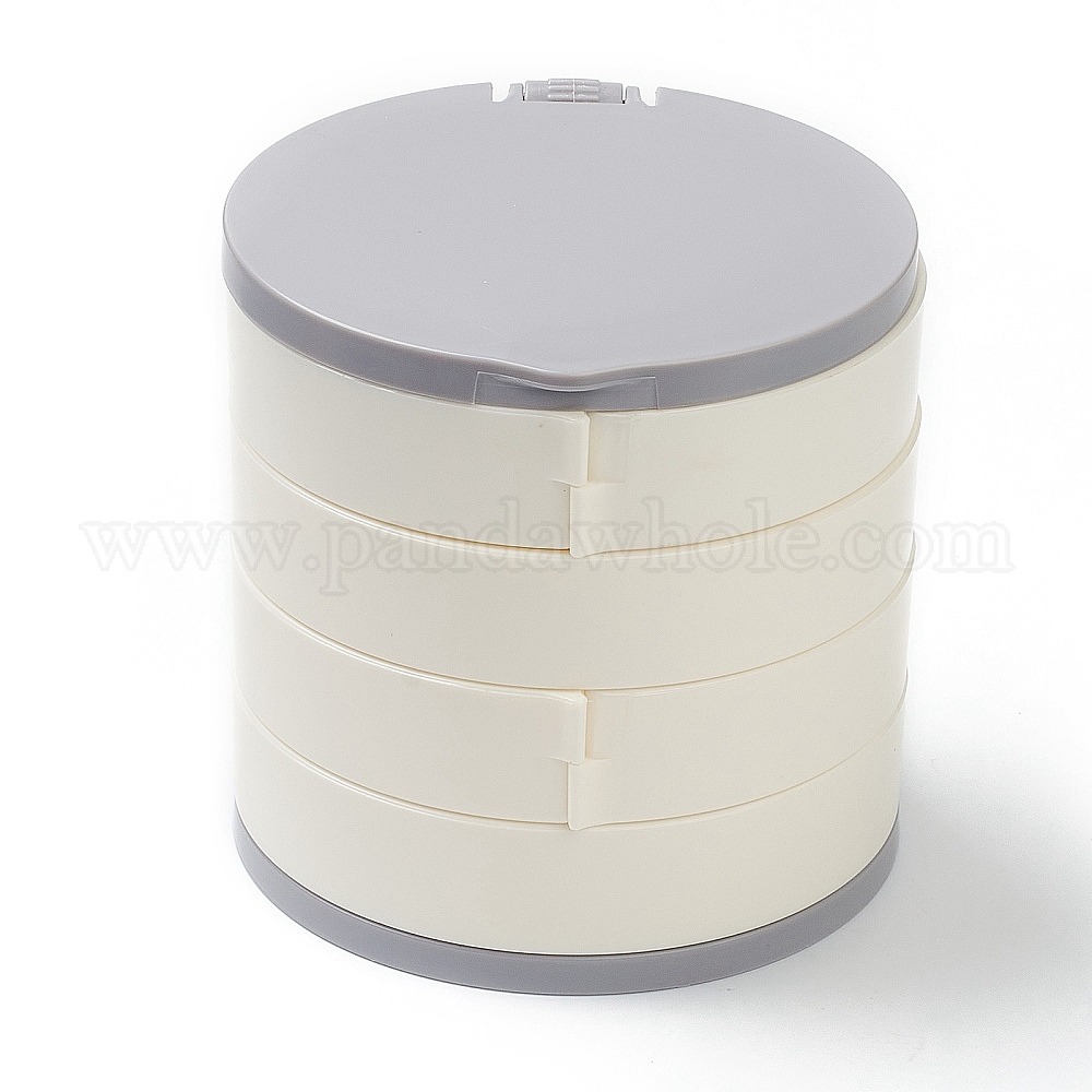 Вращающийся 4 пластиковый ящик для хранения ювелирных изделий, с зеркалом, Для кольца, серьга и колье, цилиндр