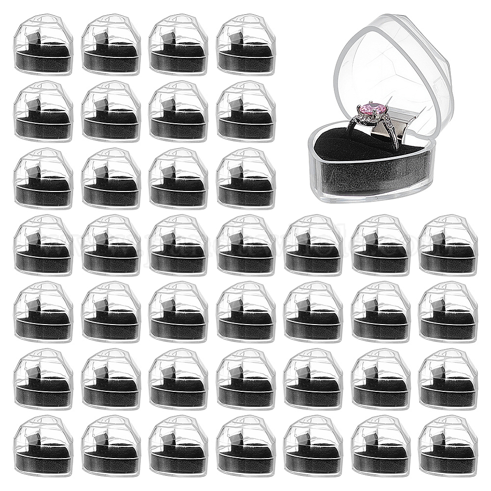 40шт. акриловые коробки для хранения колец в форме сердца, с черным бархатом внутри