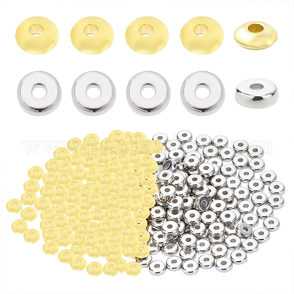 600 шт. 2 цвета пластиковые распорные бусины ccb, плоско-круглые, платина и светлое золото