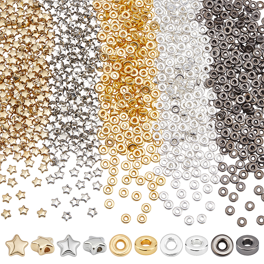 звезда: 6x6x3мм, отверстие : 1.5 мм, 250 шт / цвет, 2 цветов, 500 шт;