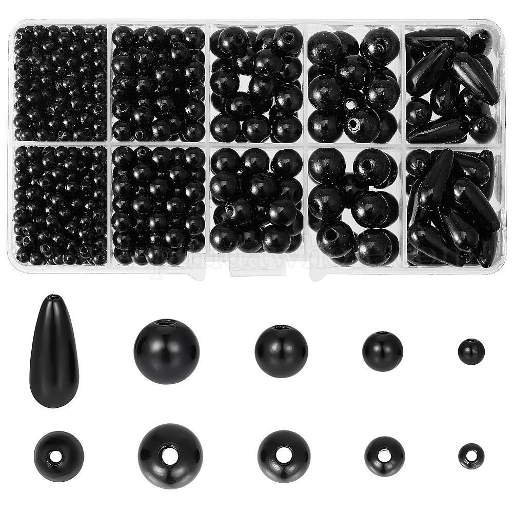 • Черный 5 бусины из искусственного жемчуга из абс-пластика, круглый и капля, чёрные, 4~17x4~7.5x4~7.5 мм, отверстие : 1.6~2.3 мм, 739 шт / коробка