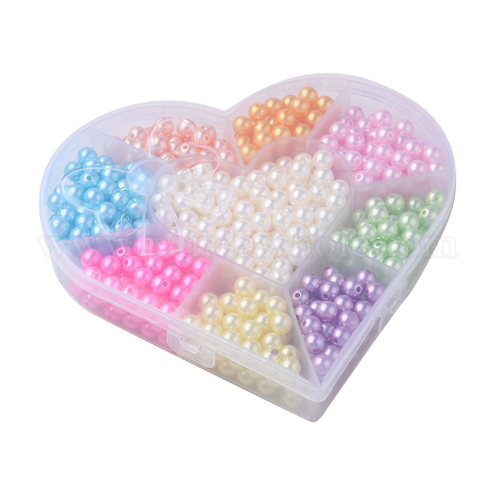 • (52) Непрозрачная лаванда 9 стильный окрашенный абс-пластик с имитацией жемчужных бусин, круглые, разноцветные, 8x8~9.5 мм, отверстие : 1.8~2 мм, 614 шт / коробка