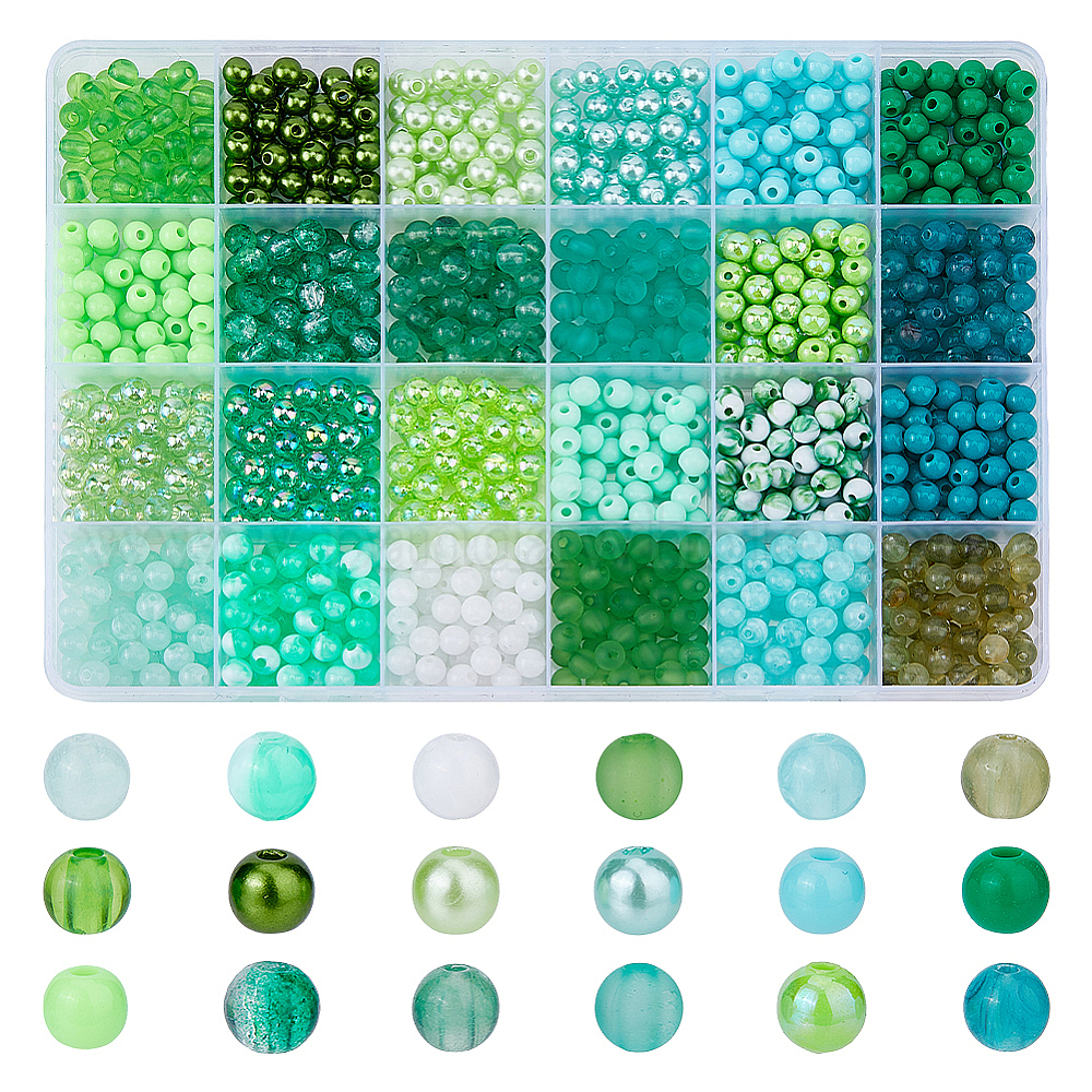 1200шт. 24стили окрашенные распылением бусины из АБС-пластика имитация жемчуга, круглые