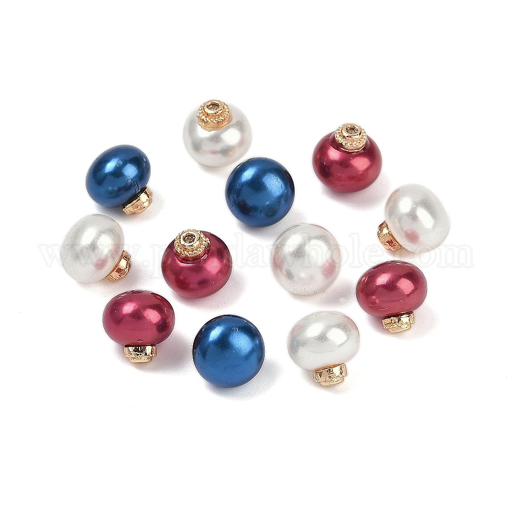 • (52) Непрозрачная лаванда Абс пластиковые жемчужные бисера, с латунным микро проложить кубического циркония, стойки покрытие, долговечный, нет отверстий / незавершенного, круглые, разноцветные, 8x7.5 мм