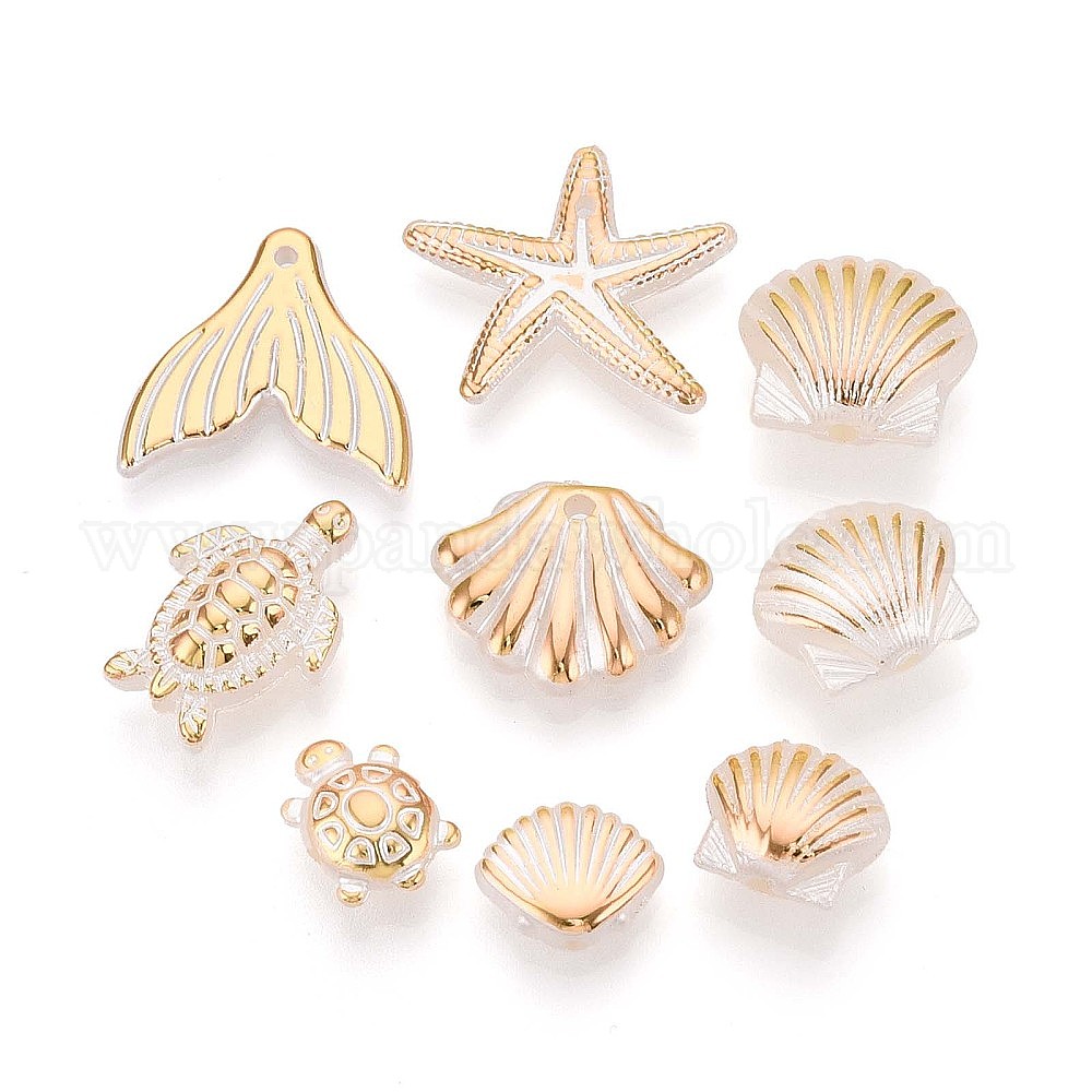 Бусины из искусственного жемчуга из АБС-пластика Ocean, золотой металл обвитыми, с половиным покрытием, разнообразные
