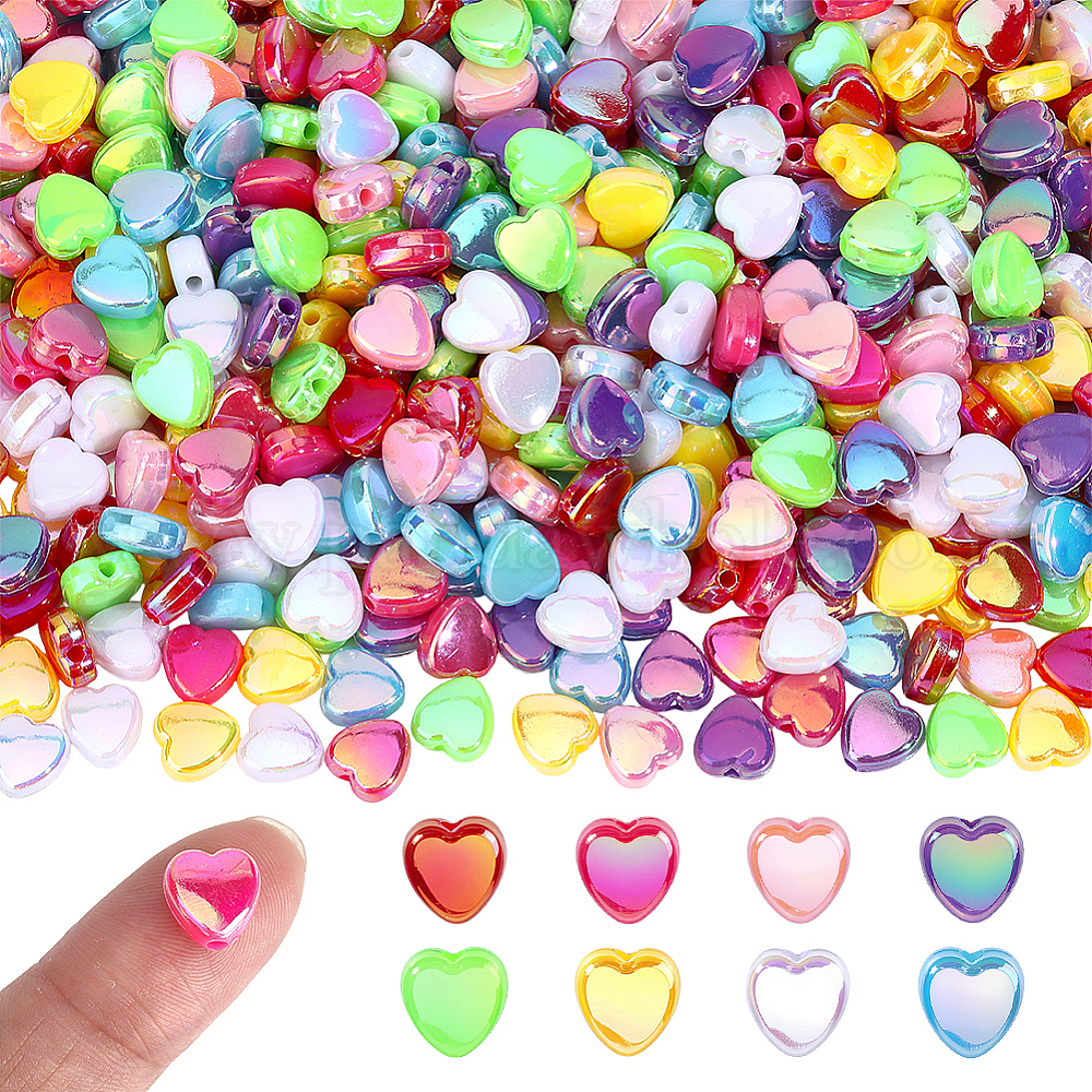 800шт 8 цвета бусины из АБС-пластика, сердце, с покрытием AB цвета