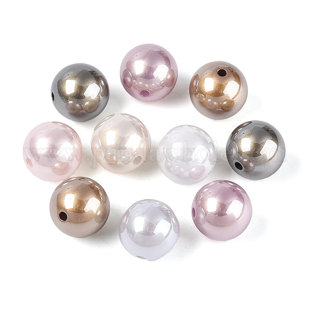 Гальванизированные бусины из АБС-пластика с имитацией жемчуга круглой формы