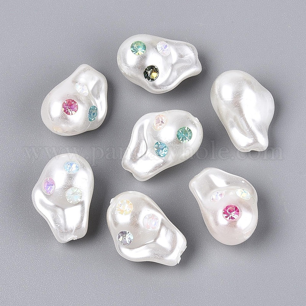 • Кремово-белый Бусины из АБС-пластика в стиле барокко, имитирующие жемчуг, самородки, со стразами, кремово-белые, 21~22x15x13 мм, отверстие : 1.8~2 мм