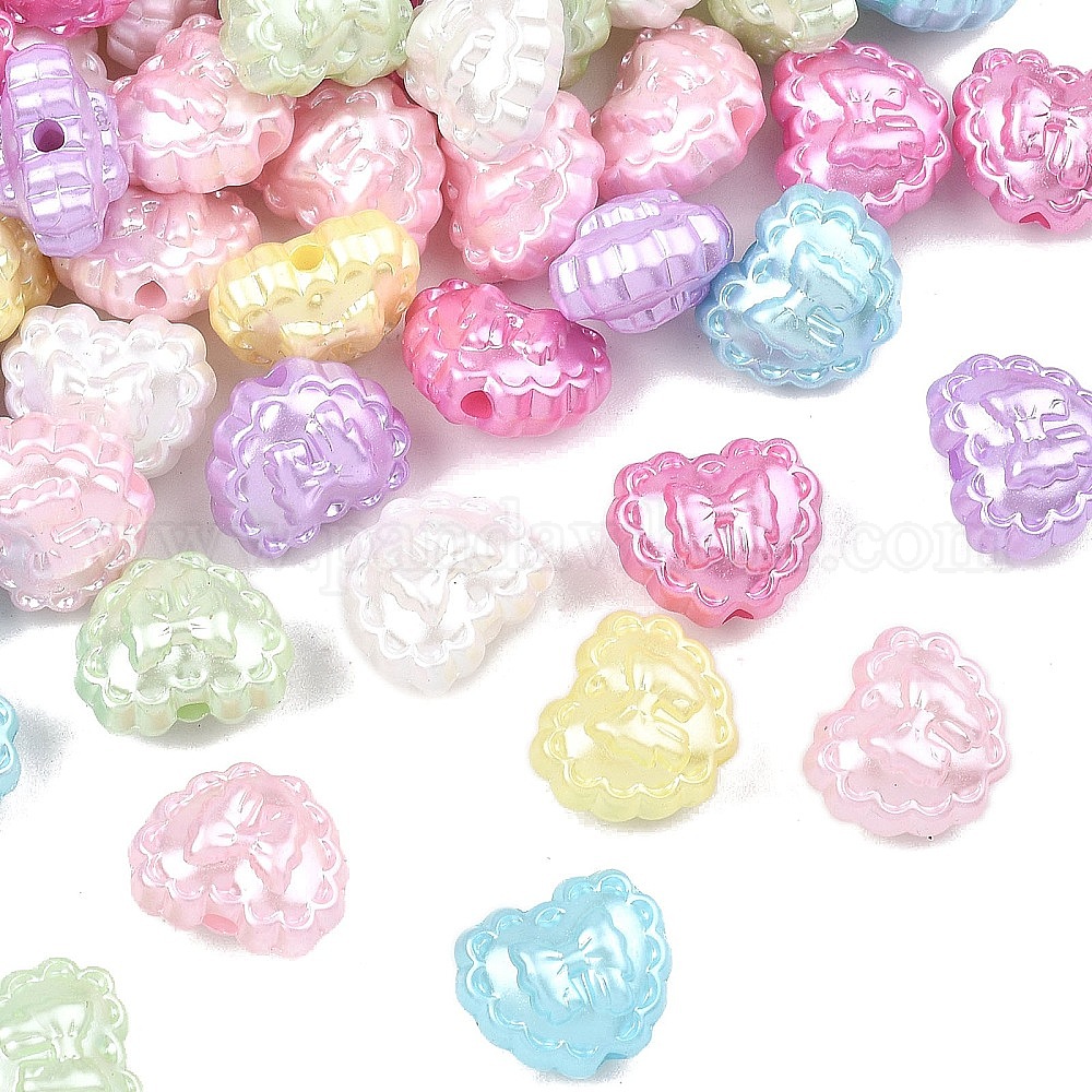 Непрозрачные АБС-пластиковые бусины, имитирующие жемчуг, сердце с бантом