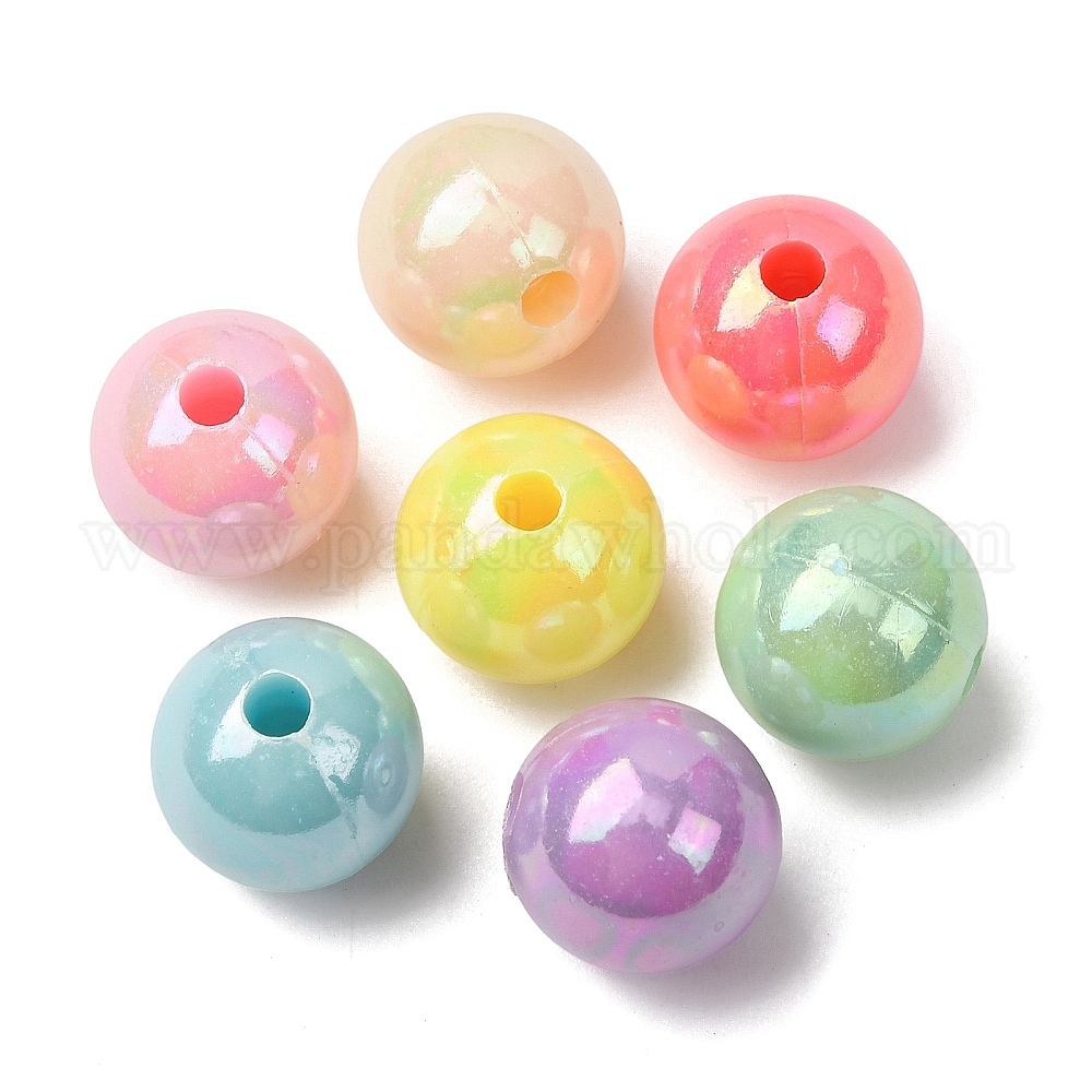 Пластиковые шарики, круглые, с покрытием AB цвета