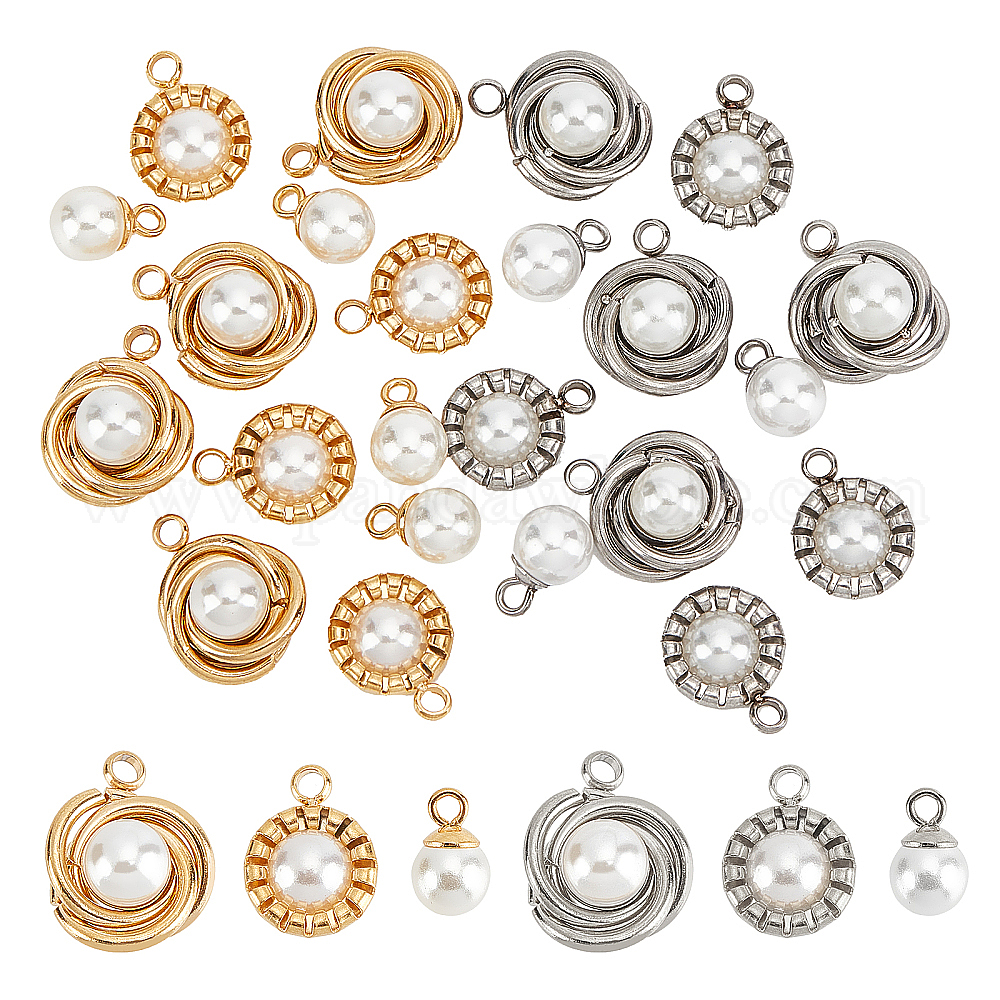24шт. 3 стиль 2 цвет 304 подвески из нержавеющей стали, с белыми пластиковыми бусинами из искусственного жемчуга, круглые