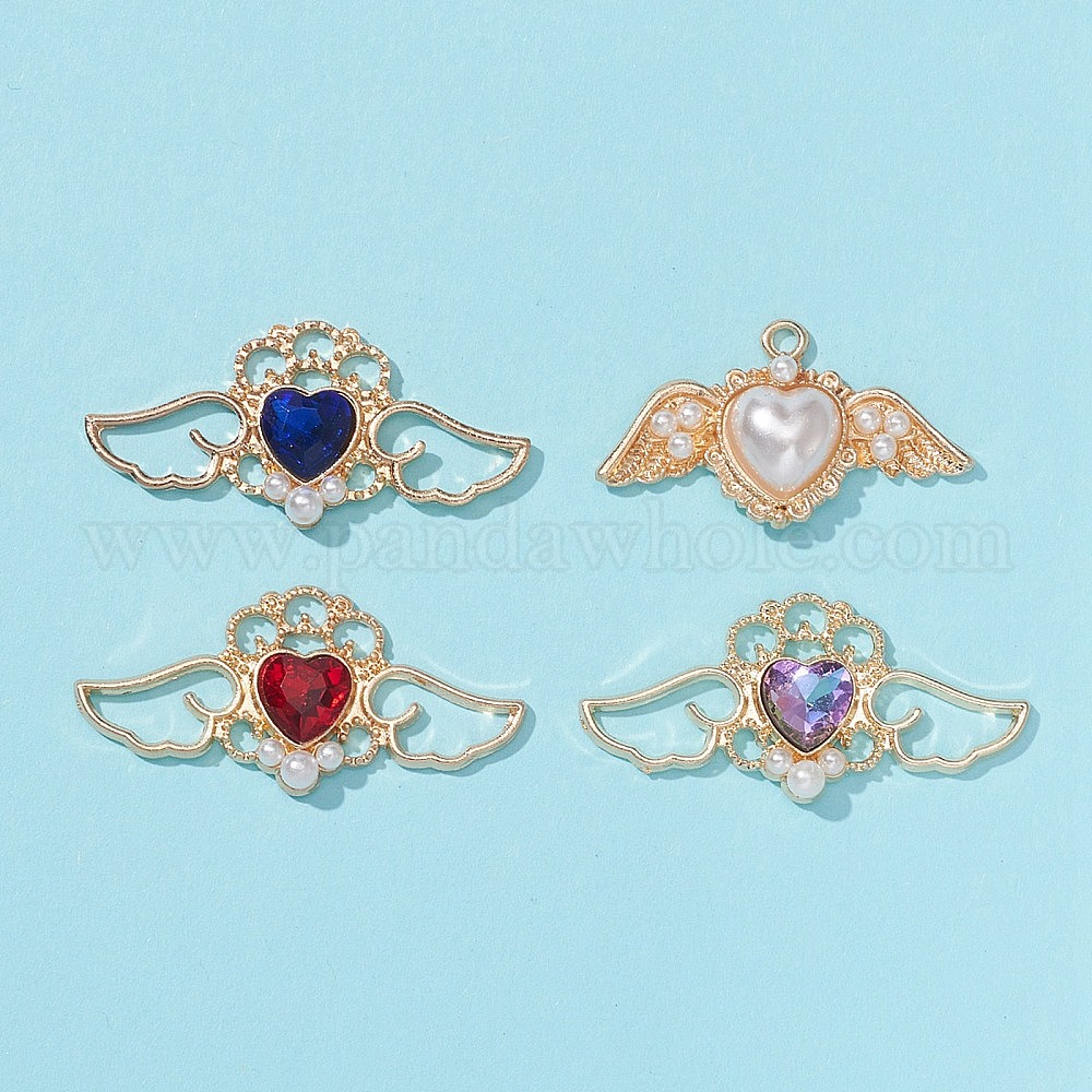 4шт 4 подвески из сплава с гальванопокрытием, с пластиковой имитационной жемчужиной, крыло с сердцем