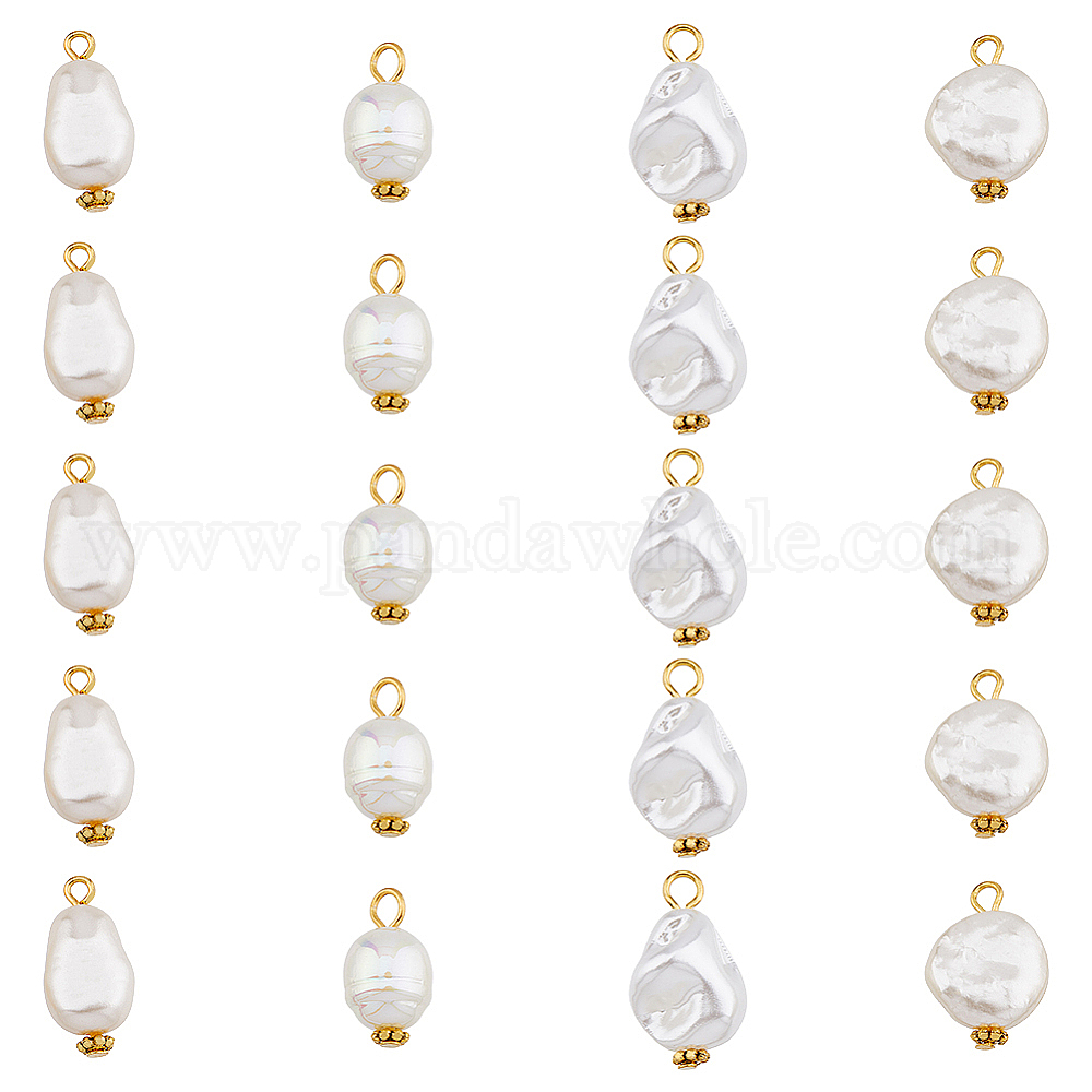 80шт 4 стили АБС-пластик подвески с имитацией жемчуга, с фурнитурой железной и сплавочной, овальные и каплевидные и плоские круглые