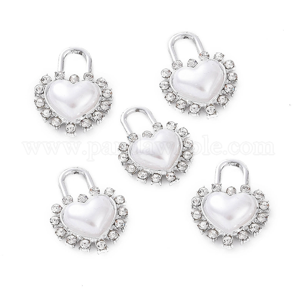 • Платина Подвески из сплава и страза, с абс пластмассовыми жемчужными бисером, подвеска в виде замка в виде сердца, платина, 24.5x18.5x5.5 мм, отверстие : 5x6.5 мм
