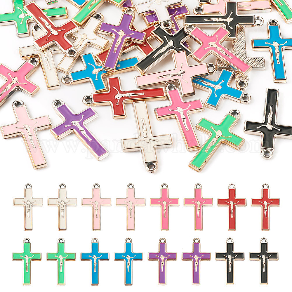 32шт 8 цвета ccb пластиковые подвески, с эмалью, крест с оберегом Иисуса