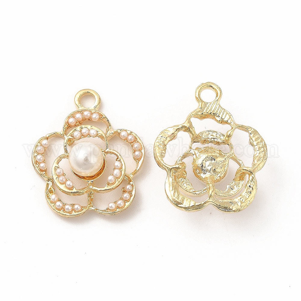 Абс пластмассовые жемчужные подвески, со сплавочной фурнитурой, цветочный шарм