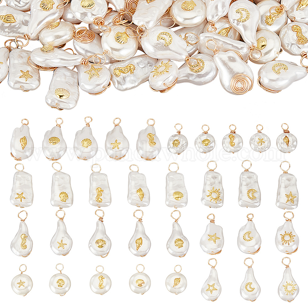 • Mixed Shapes 16 наборы 8 стили абс пластик имитация жемчуга подвески, с латунными кабошонами и экологически чистой медной проволокой, разнообразные, 21x10.5x7.5 мм, отверстие : 2~2.4 мм, о 3 шт / комплект, 2 наборы / стиль