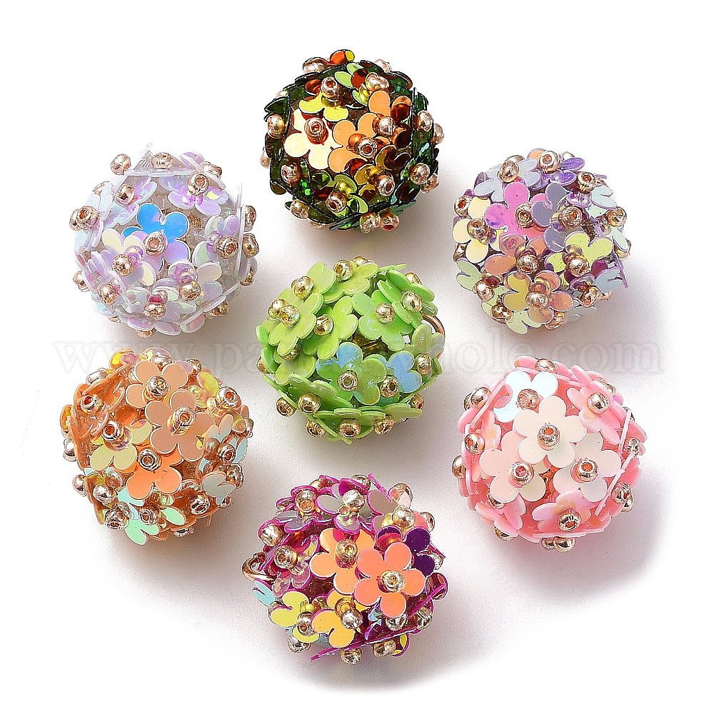 Подвески из пластика пвх с пайетками и стеклянными бусинами, с железными петлями, цветочный шарм