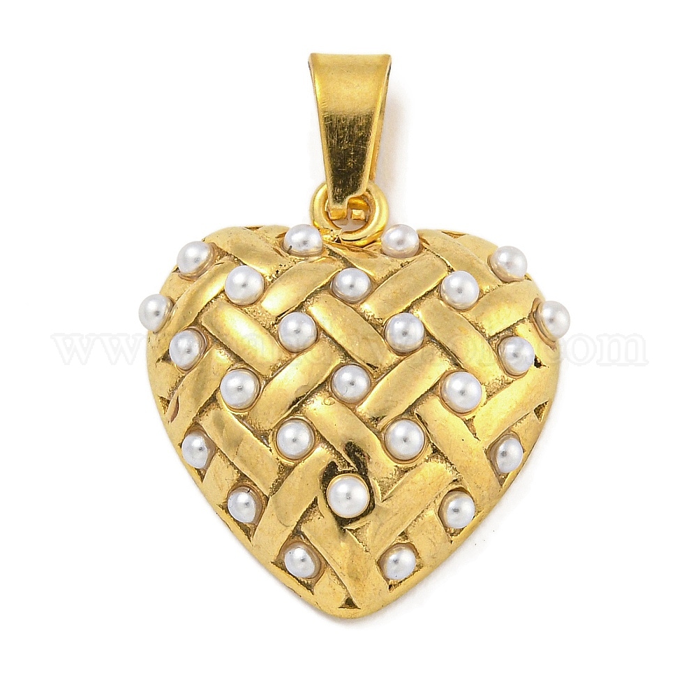 • Сердце Ионное покрытие (ip) 304 подвески из нержавеющей стали, с ABS имитации жемчуга, золотые, сердце, 17.5x16.5x5.5 мм, отверстие : 5x3 мм