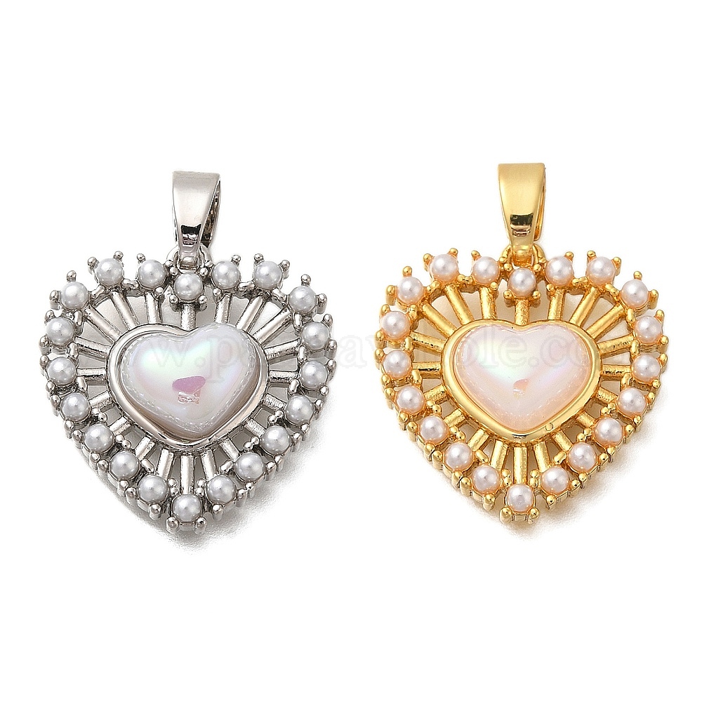 Сердце стойки обшивки латунные подвески, с abs имитационными жемчужными бусинами , без свинца и без кадмия, долговечный