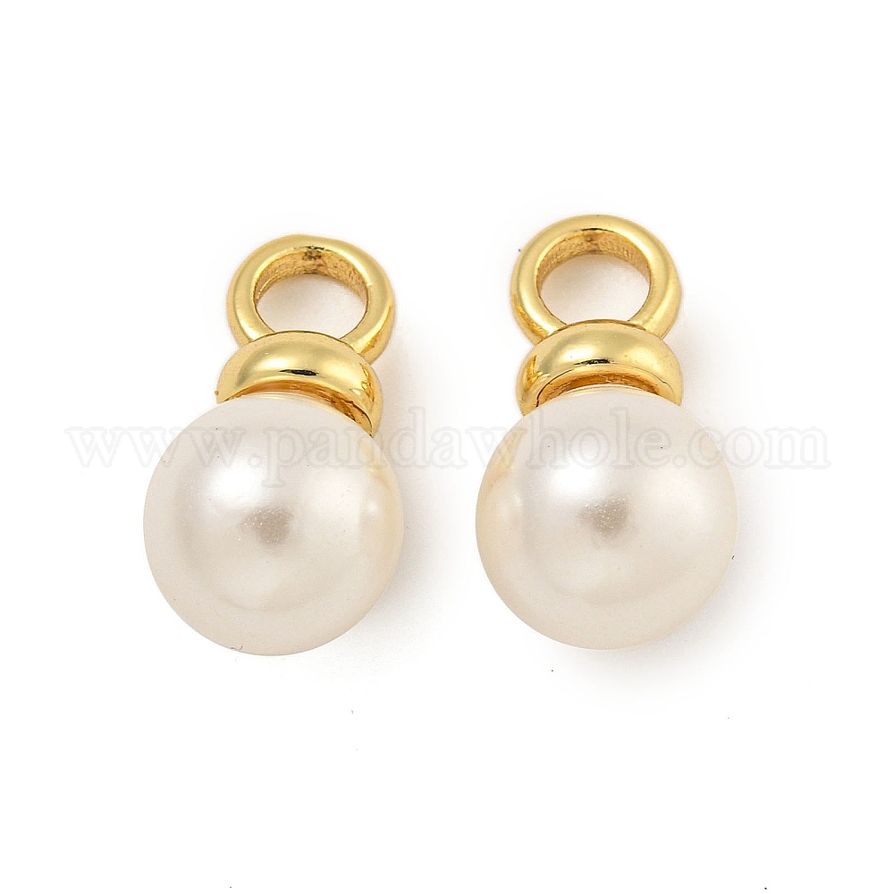 • Настоящее золото 18K Круглая форма стойка гальваническое покрытие латунные подвески, с ABS имитации жемчуга, без кадмия и без свинца, реальный 18 k позолоченный, 18.5x10 мм, отверстие : 4 мм