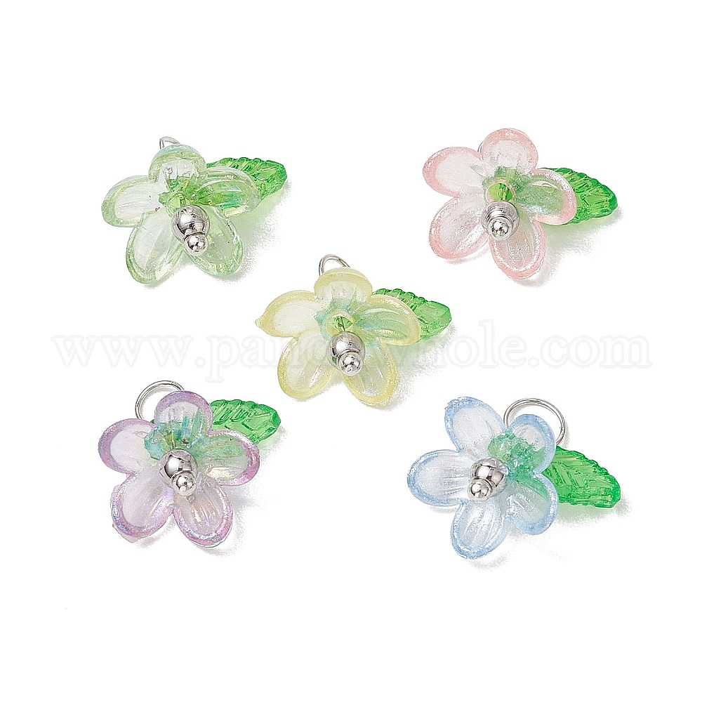 • Платина Подвески из пластика и акрила, с латунной фурнитурой , цветок, платина, 12~13x12x15 мм, отверстие : 3.5 мм
