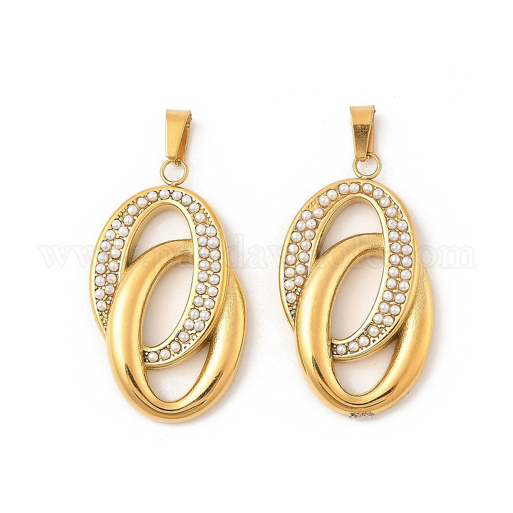 304 подвески из нержавеющей стали, с абс пластмассовой имитационной жемчужиной, овальные амулеты, ионное покрытие (ip)