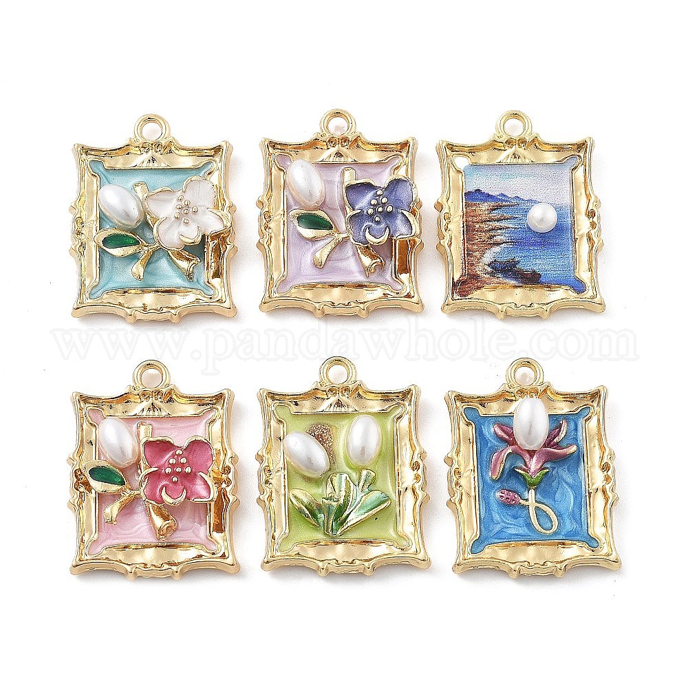 Подвески из эмали и сплава, прямоугольник с цветочной подвеской, с пластмассовой жемчужиной abs