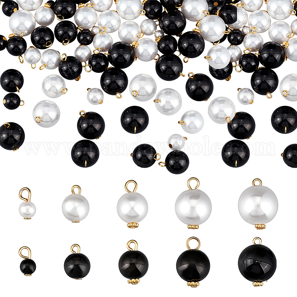 100 шт. 5 стили 2 цвета АБС-пластик имитация жемчуга подвески, круглые, с золотыми плоскими головками штифтов петля