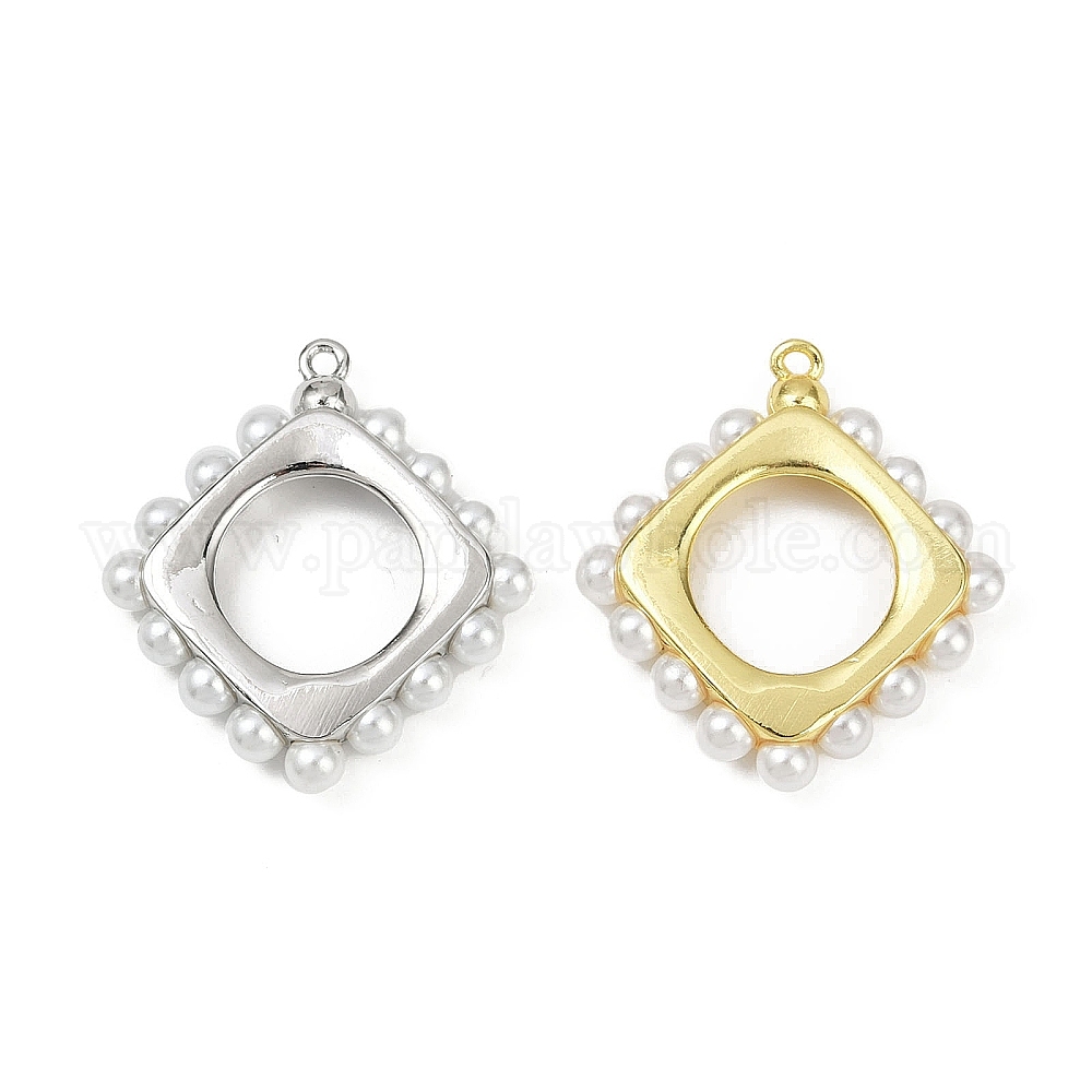 • Платина Подвески из латунного пластика и жемчуга, квадратный, долговечный, без кадмия и без свинца, стойки покрытие, платина, 30.5x28x4.5 мм, отверстие : 1.5 мм