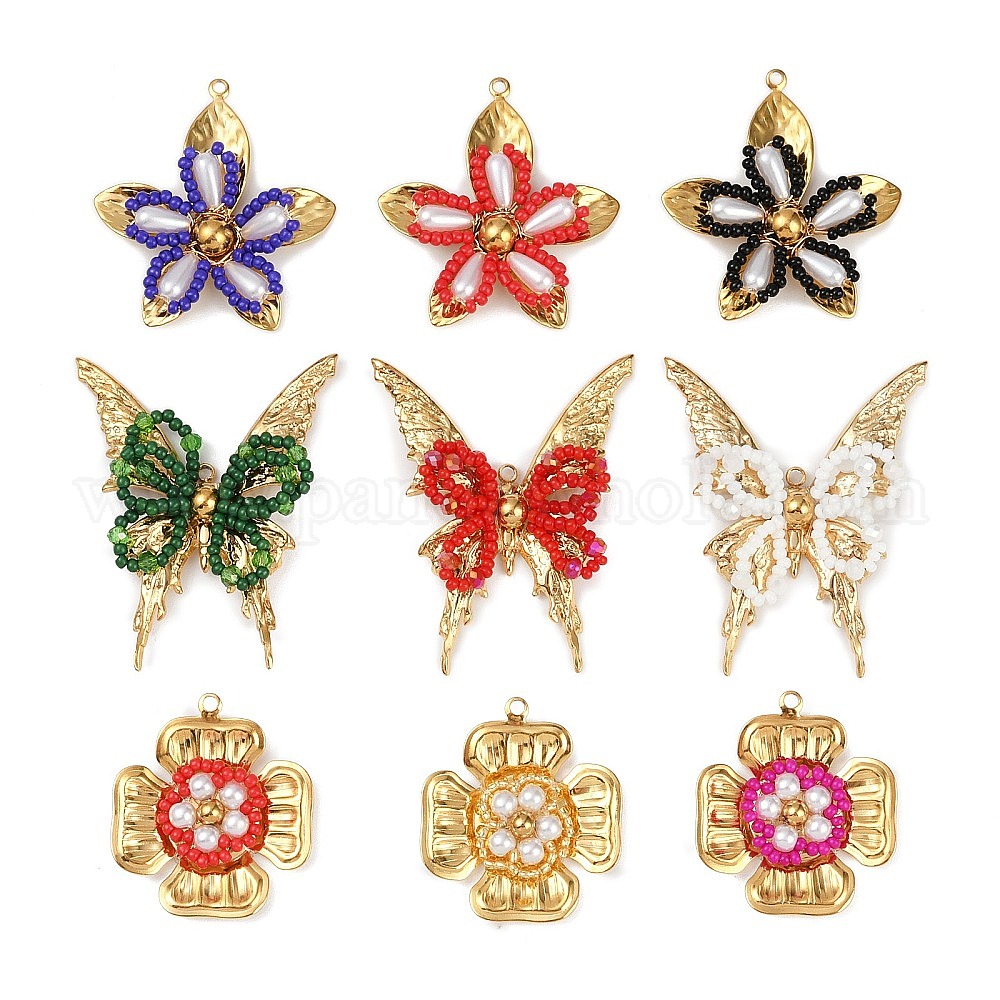 • Бабочка Пластиковые подвески, 304 подвески из нержавеющей стали, красные, бабочка, 46x37.5x7 мм, отверстие : 1.6 мм