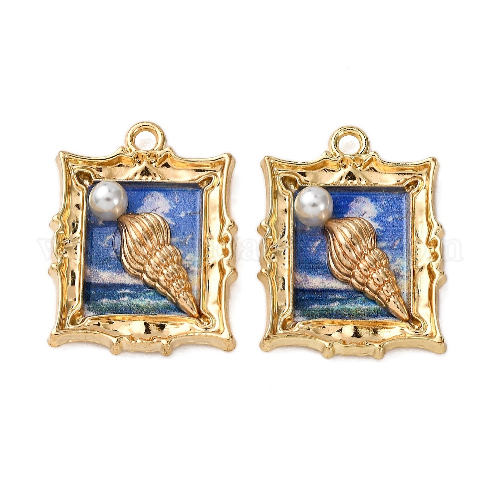 Печатные подвески сплава, прямоугольник со спиральными подвесками в форме ракушки, с ABS имитации жемчуга, стойки покрытие