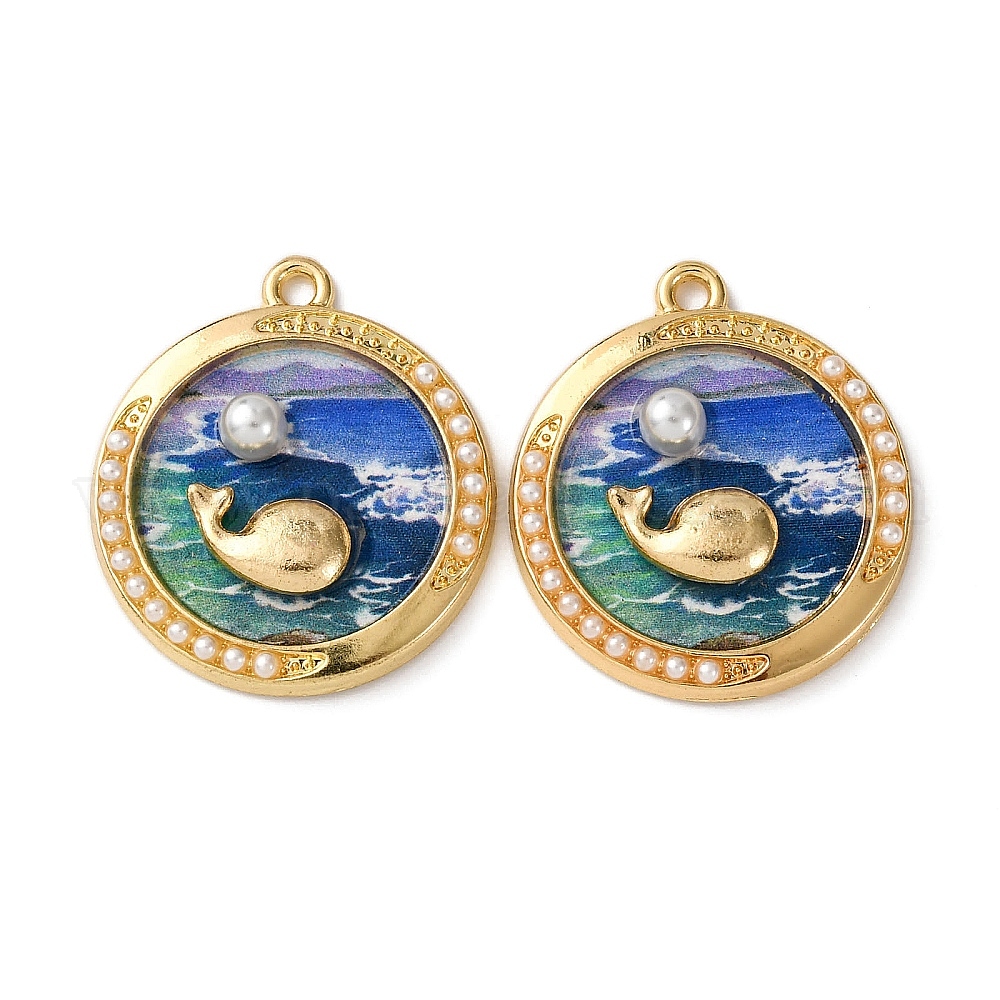 Печатные подвески сплава, плоские круглые и китовые подвески, с ABS имитации жемчуга, стойки покрытие