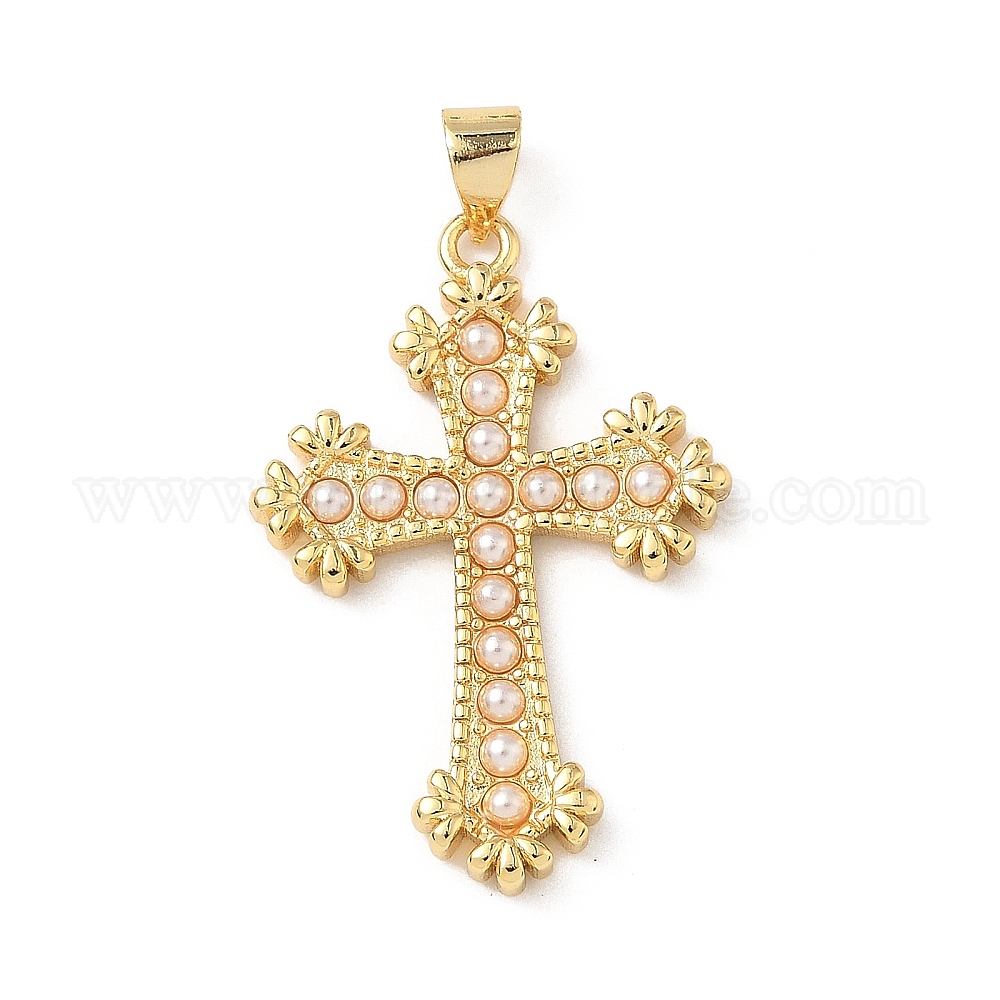 Латунные подвески, крестик, с абс пластмассовой имитационной жемчужиной, без кадмия и без свинца