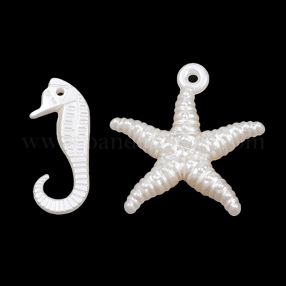 • Морская звезда Абс пластмассовые жемчужные подвески, белые, морская звезда, 29x28.5x7 мм, отверстие : 2 мм