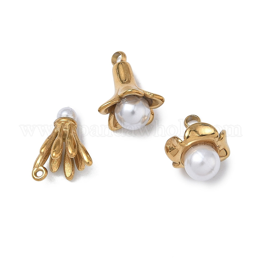 • Золотой 304 прелести нержавеющей стали, бадминтон, с пластиковой имитационной жемчужиной, золотые, 13.5x10.5x8.5 мм, отверстие : 1 мм
