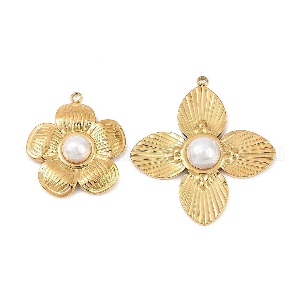• Настоящее золото 18K 304 подвески из нержавеющей стали и АБС-пластика с имитацией жемчуга, , ионное покрытие (ip), реальный 18 k позолоченный, 26.5x24x6 мм, отверстие : 1.8 мм