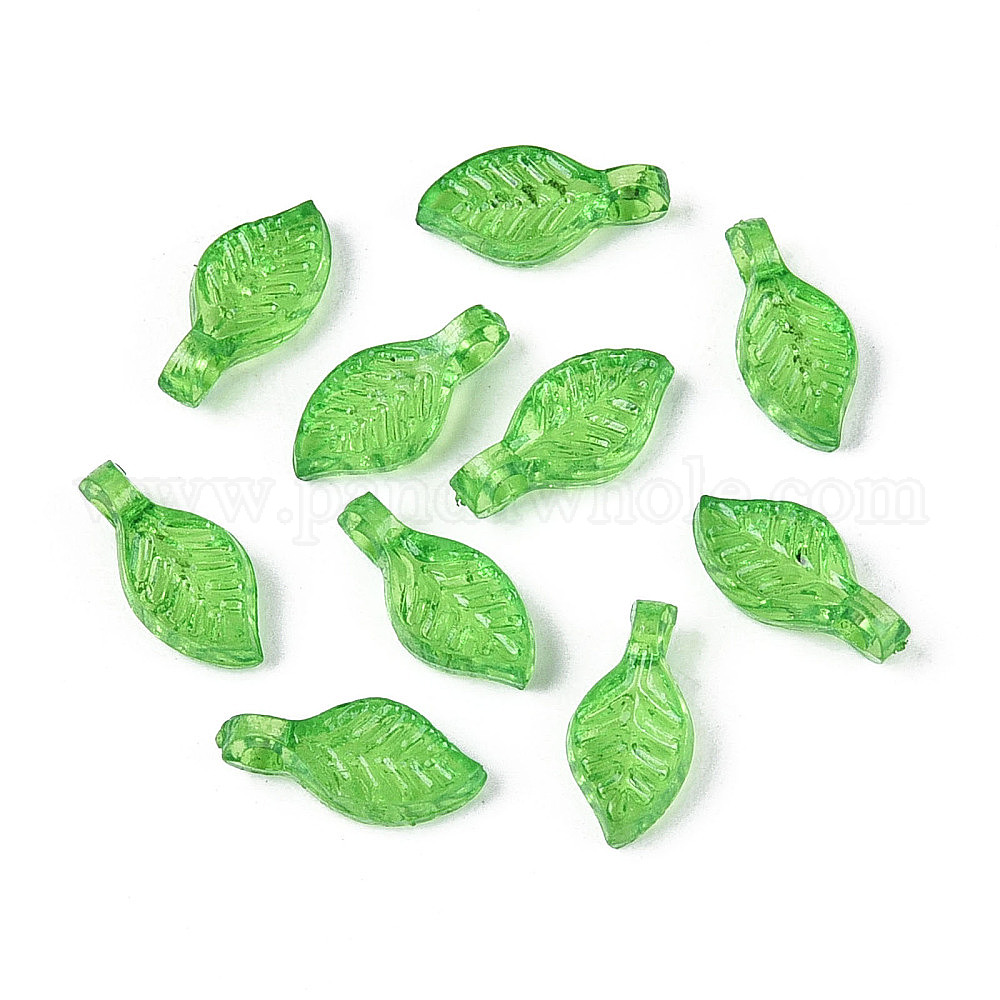 • Зеленый лайм Прозрачные пластиковые подвески, лист, зеленый лайм, 10~10.5x5x3.5 мм, отверстие : 1.5 мм, Около 8333 шт / 500 г