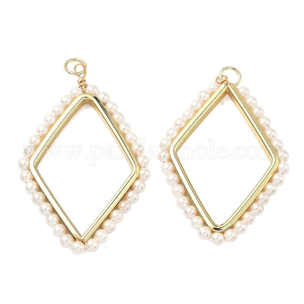 Подвески из АБС-пластика с жемчугом, ромбовидный шарм, с латунным, долговечный, стойки покрытие, без свинца и без кадмия