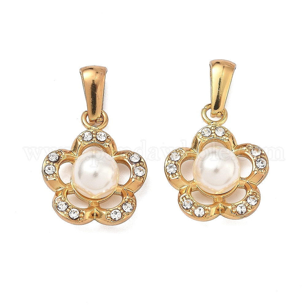 304 подвески из нержавеющей стали с микропаве из стразов, , с абс пластмассовой имитационной жемчужиной